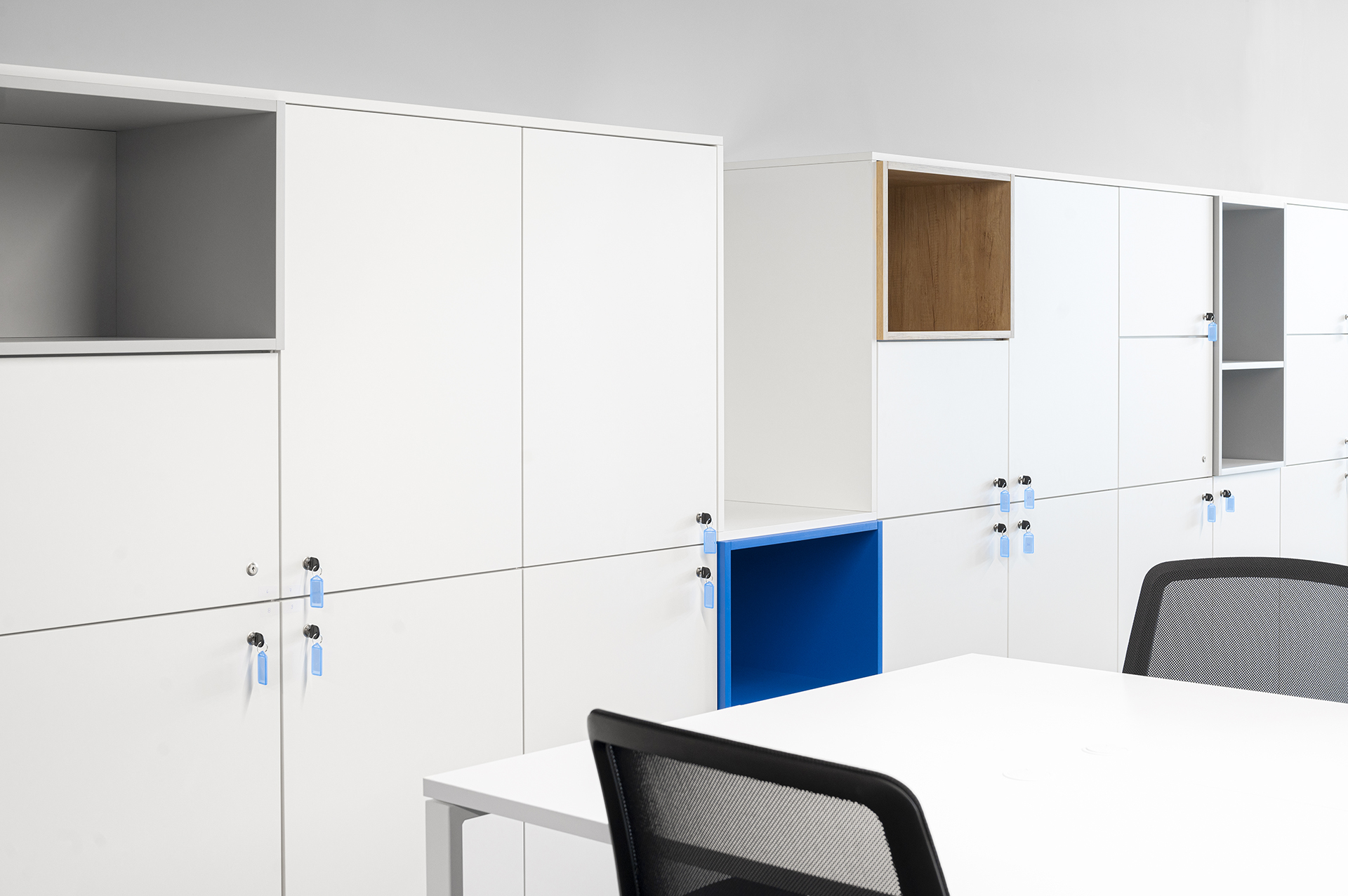 UNNOcabinets is an archive cabinet system, specially designed and made to respond to current office archive needs. With an extreme versatility, in addition to the archive it is also prepared to simultaneously compartmentalize areas, keeping a high acoustic reduction index.