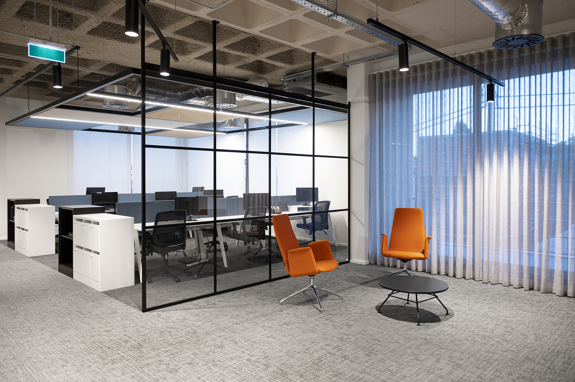 DYAPHANA frame is a simple and minimalist design partition system. With a clean construction without excess materials, it conveys elegance and softness, ensuring an acoustic index perfectly suited to the requirements of today’s offices.