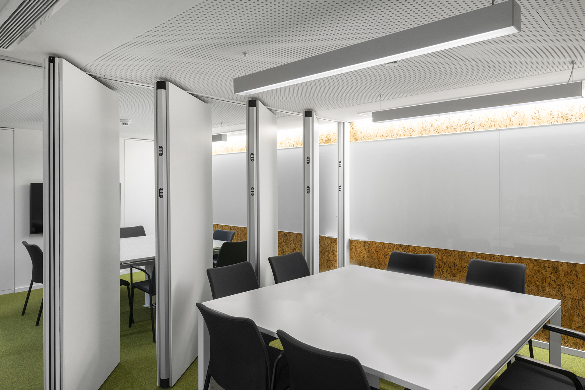 UNNOmove es un sistema integrado de paredes móviles, idealizado para dividir salas de reuniones, auditorios, entre otros, de forma rápida y eficaz, mediante un método que incluye la fijación de una estructura de acero galvanizado al forjado, sin necesidad de guías en el suelo.
