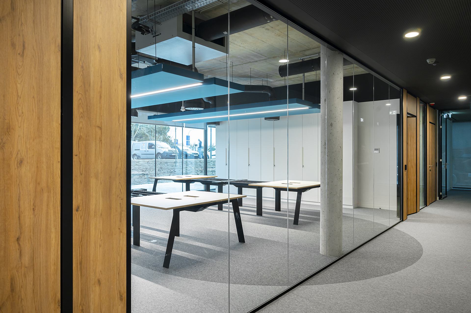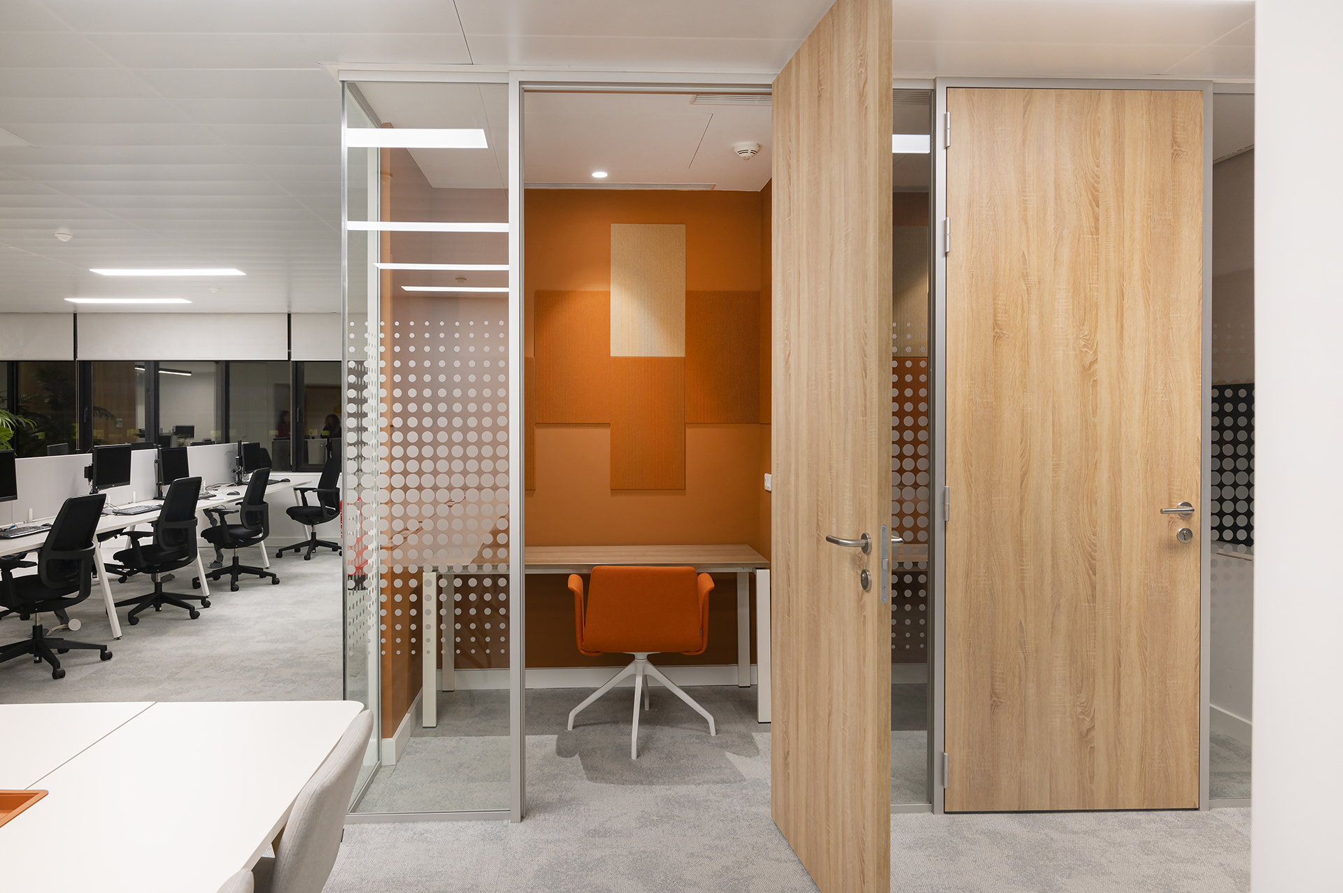 Dyaphana es un sistema de mamparas de diseño simple y minimalista. Con una construcción limpia y sin excesos de materiales, transmite elegancia y suavidad, garantizando un índice acústico perfectamente adecuado a las exigencias de las oficinas actuales.