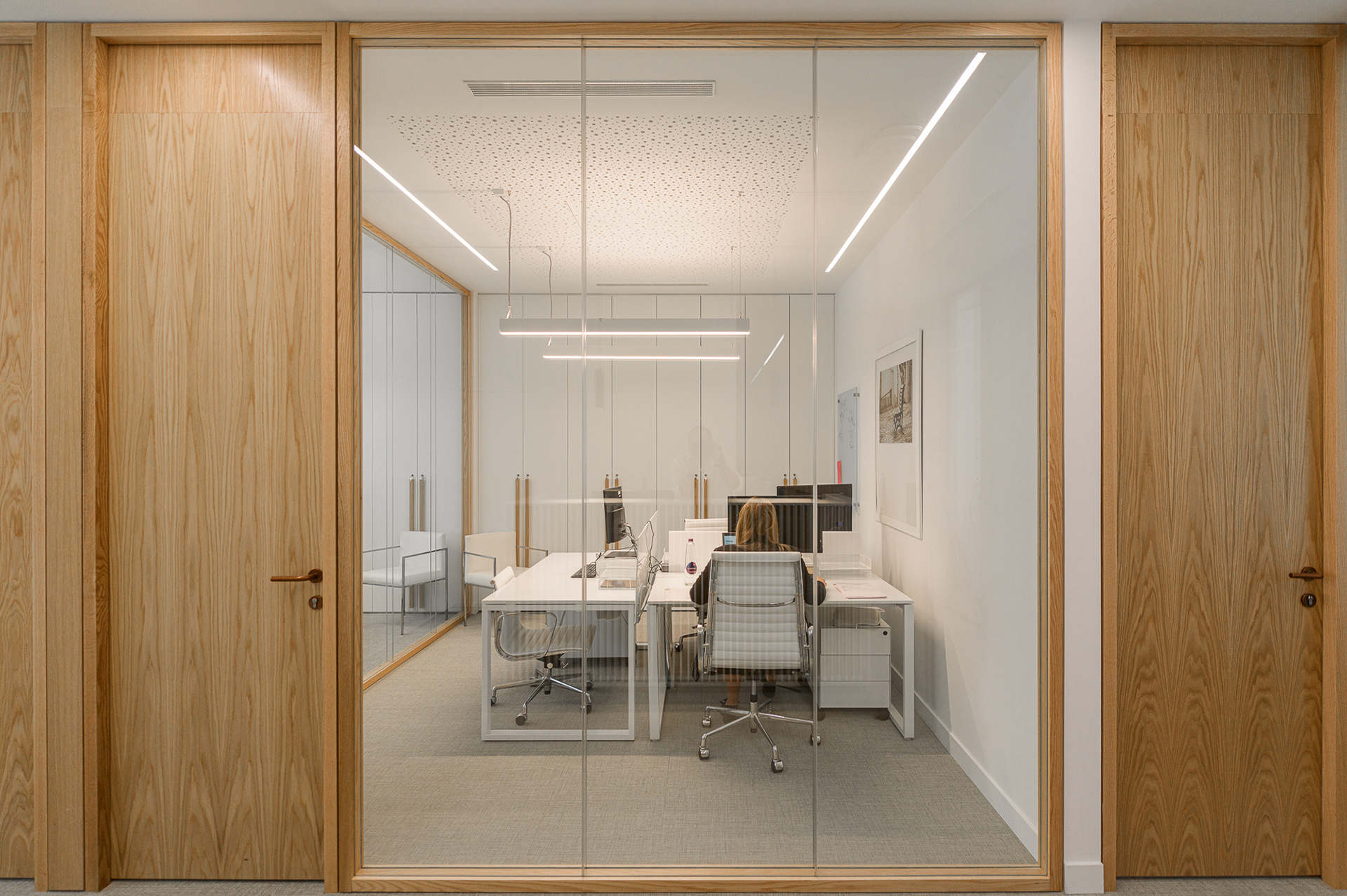 UNNOwood é um sistema de divisórias de design simples e elegante, concebido para dividir e organizar com eficácia espaços contemporâneos. Tendo como elemento principal, o vidro contínuo, promove a continuidade visual, favorecendo a comunicação entre espaços de trabalho e preservando a luz ambiente.